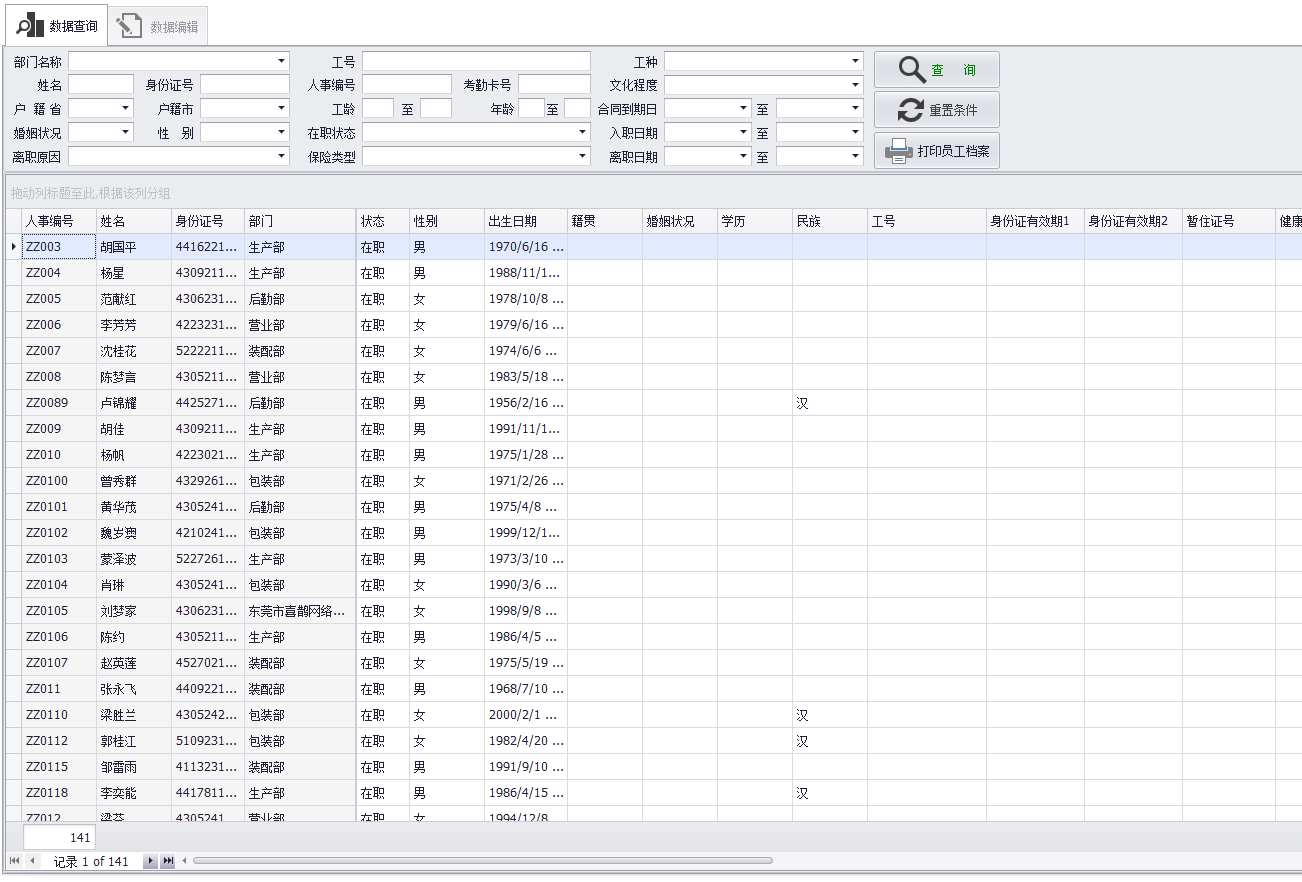 管理与维护企业员工档案资料,包括员工基础资料、入职资料、合同信息等,系统支持打印员工个人档案报表。
